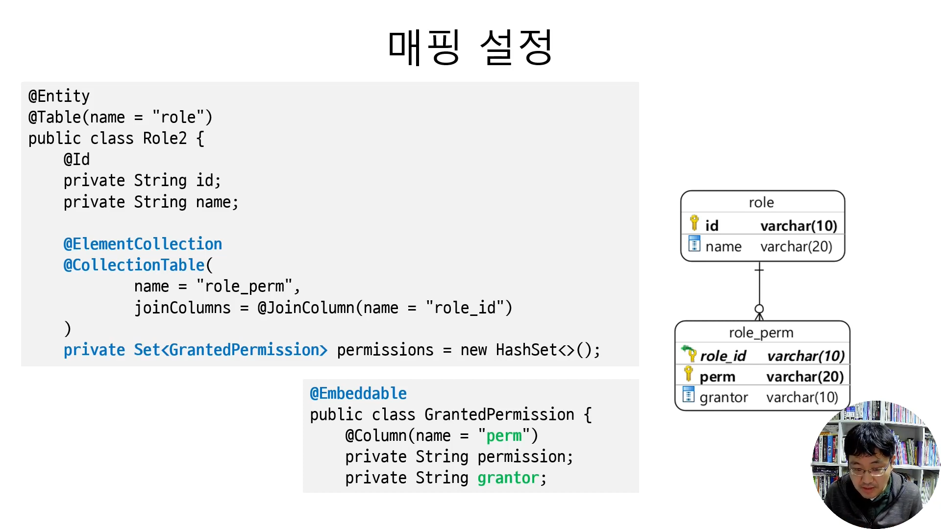role_perm을 콜렉션 테이블이라고 표현한다.